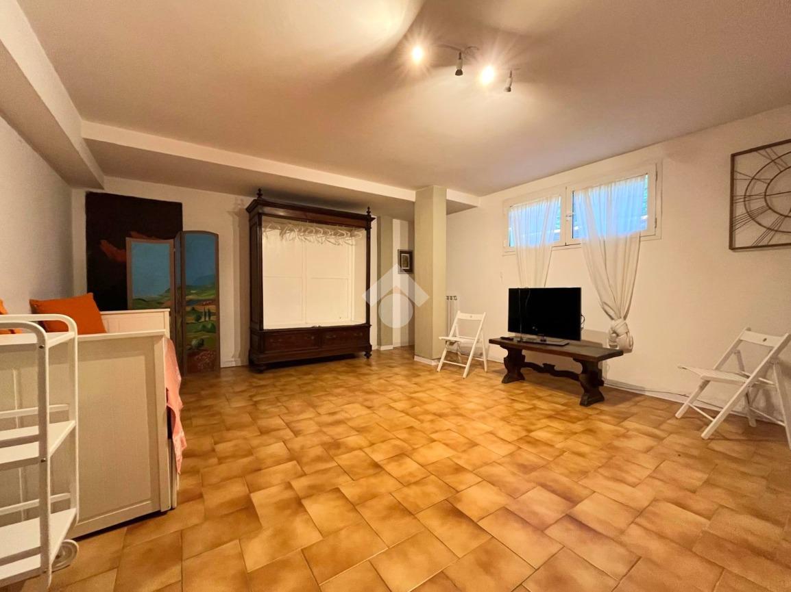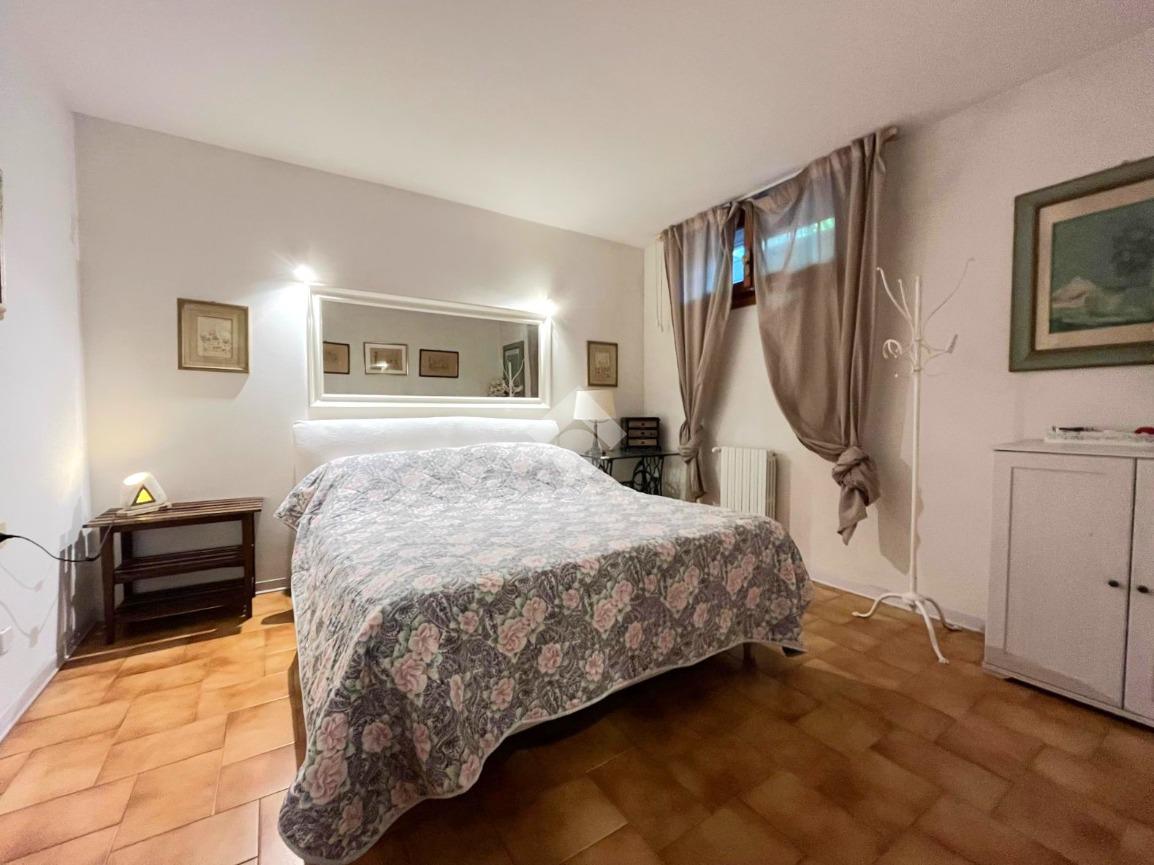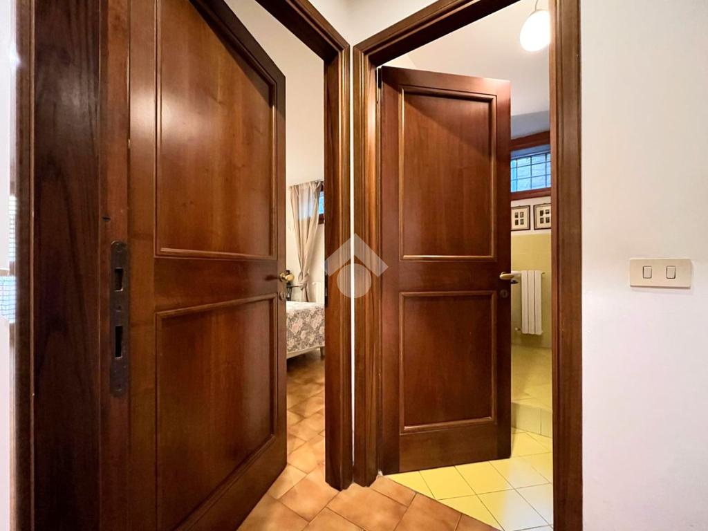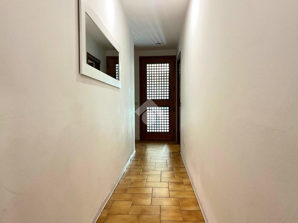 L'immobile si trova nella parte seminterrata della villa con ingresso indipendente ed è composto da un ingresso, una cucina abitabile, una camera da letto matrimoniale, un vano cantina con finestra adibito a sala, un servizio igienico finestrato con box doccia ed un ripostiglio cieco.