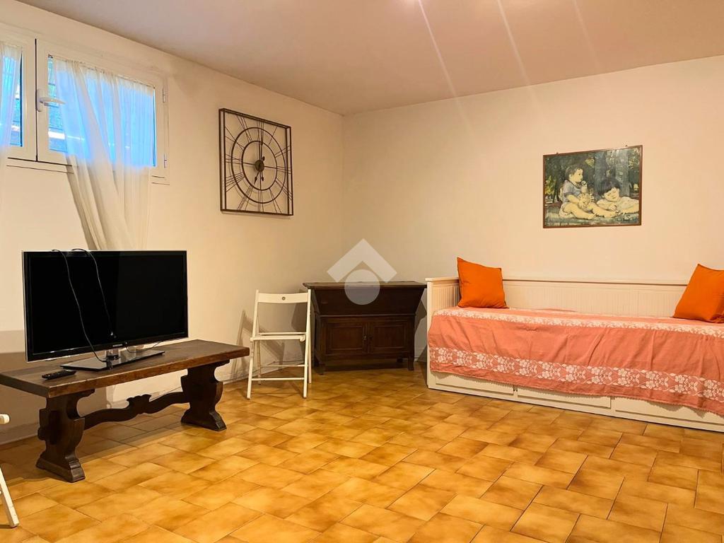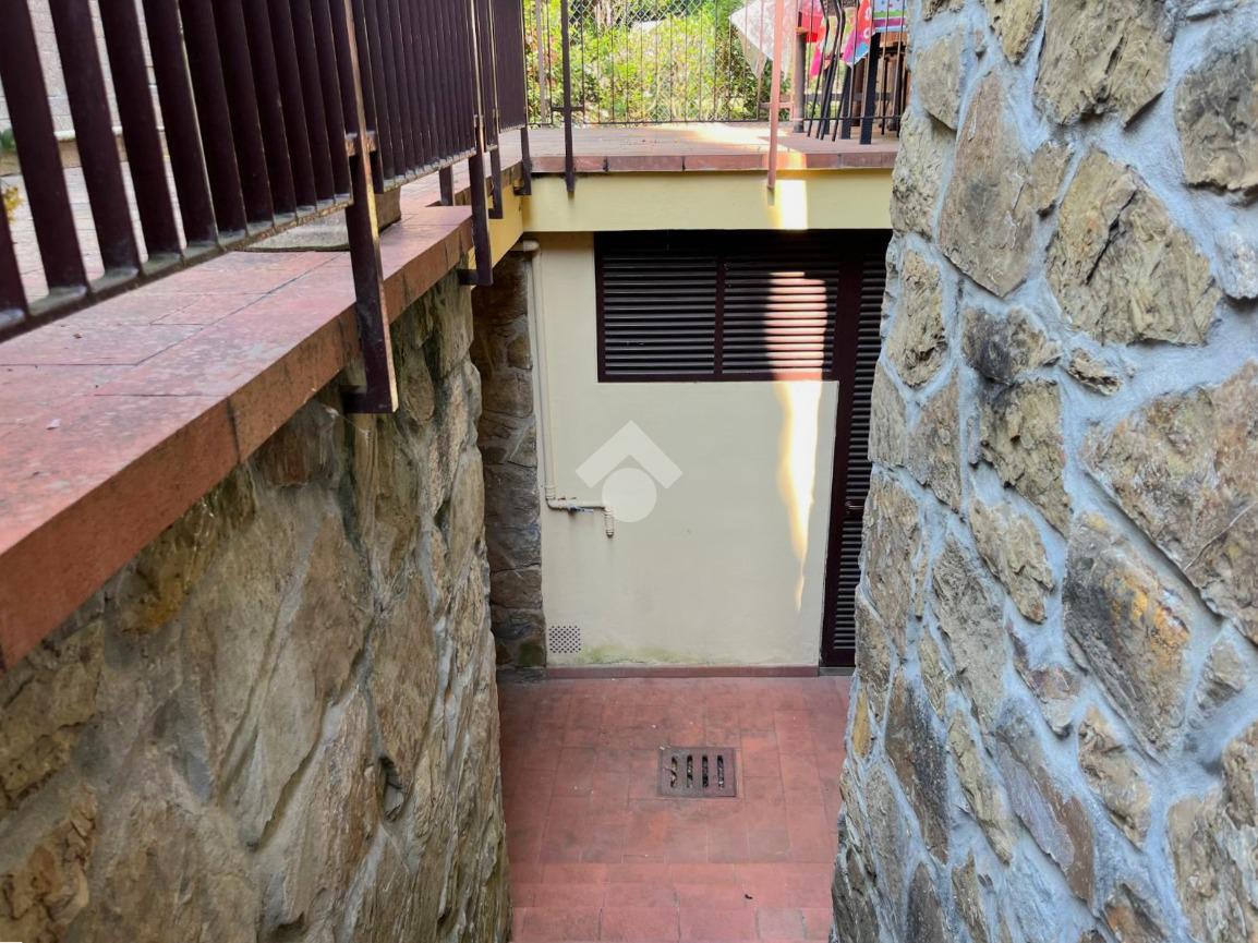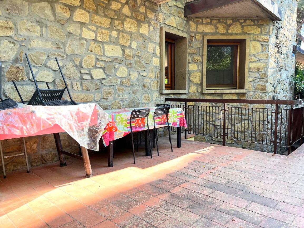 L'immobile si trova nella parte seminterrata della villa con ingresso indipendente ed è composto da un ingresso, una cucina abitabile, una camera da letto matrimoniale, un vano cantina con finestra adibito a sala, un servizio igienico finestrato con box doccia ed un ripostiglio cieco.