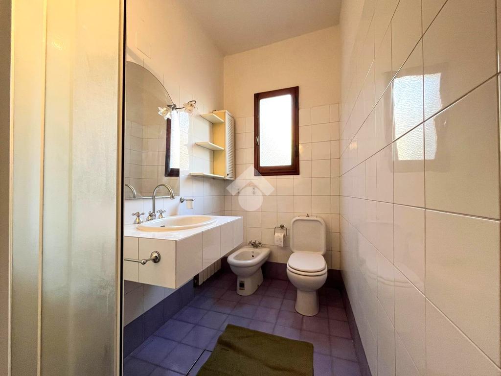 Il servizio igienico è finestrato con box doccia. Infine troviamo un ripostiglio cieco adiacente all'ingresso.